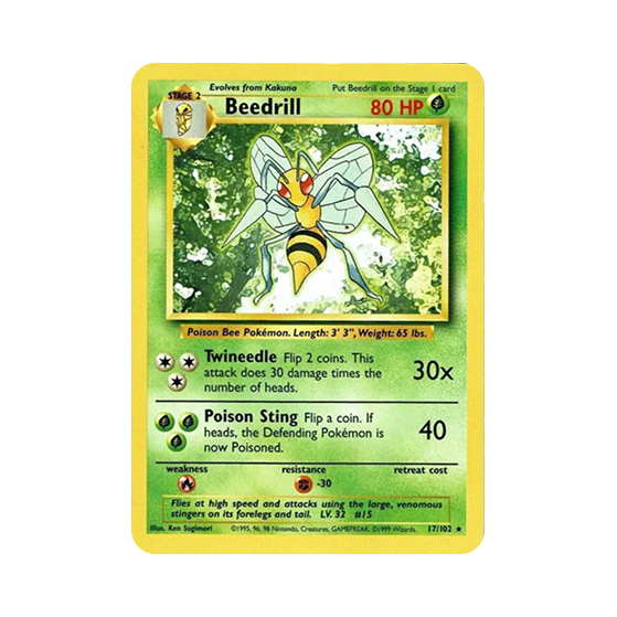 17/102 Beedrill from 1998 Pokémon TCG: Base Set Unlimited.