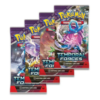 Each Pokémon TCG: Scarlet & Violet - Temporal Forces booster pack contains 10 cards and either 1 basic Energy.