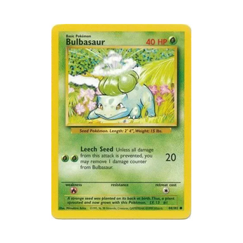 44/102 Bulbasaur from 1998 Pokémon TCG: Base Set Unlimited.